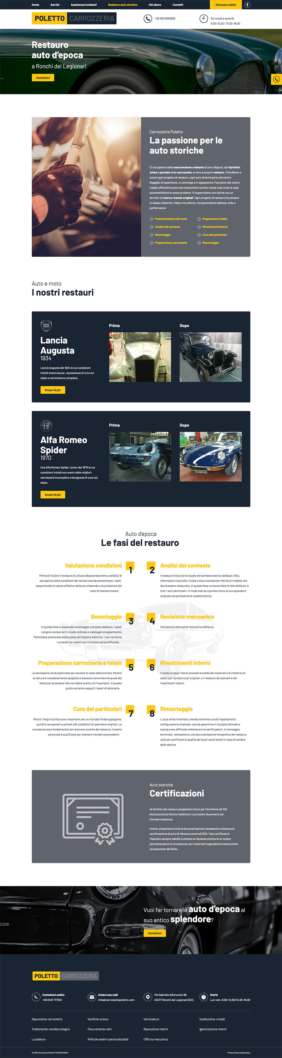 Inoltre è specializzata nel restauro dei veicoli d’epoca di ogni marca e periodo.