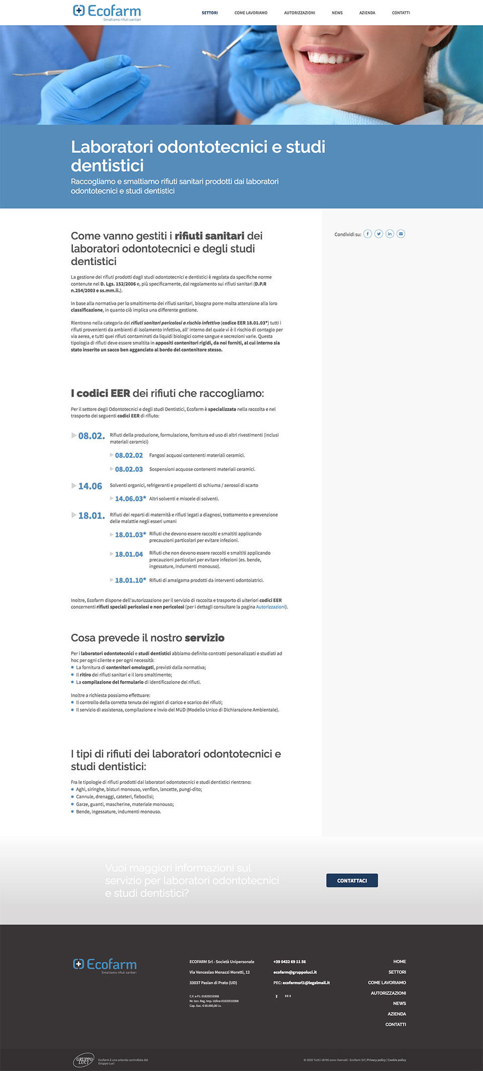Ecofarm è un'azienda specializzata nel ritiro, trasporto, stoccaggio e smaltimento di rifiuti sanitari, derivanti da attività ambulatoriali, mediche e affini.