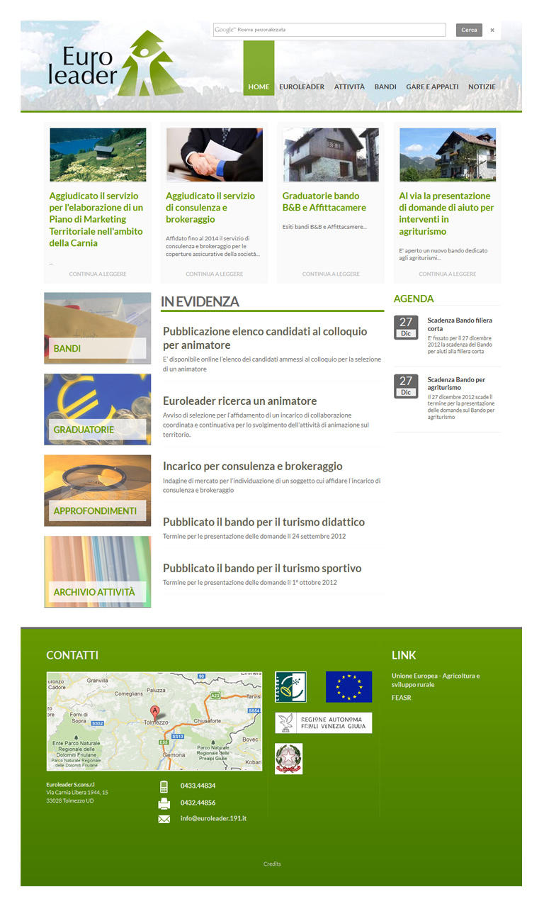 Per offrire uno strumento di consultazione aggiornato sulle proprie attività e su tutte le iniziative volte allo sviluppo del territorio coinvolto, Clikka!com ha realizzato per Euroleader un portale web, basato su CMS (Content Management System) Refinery, che consente la completa gestione in autonomia, tramite la sola interfaccia web, sia dei contenuti che della struttura di navigazione.