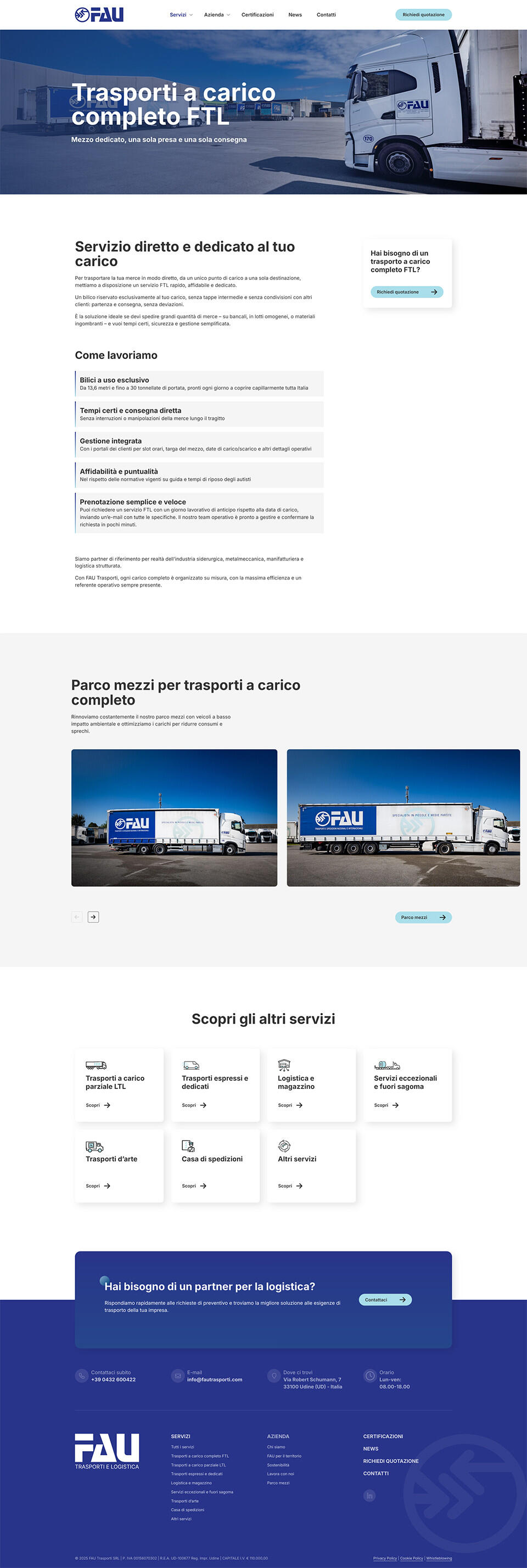 Per FAU Trasporti, azienda di Udine specializzata in soluzioni logistiche e di trasporto, abbiamo progettato e sviluppato un nuovo sito web veloce e orientato alla conversione.