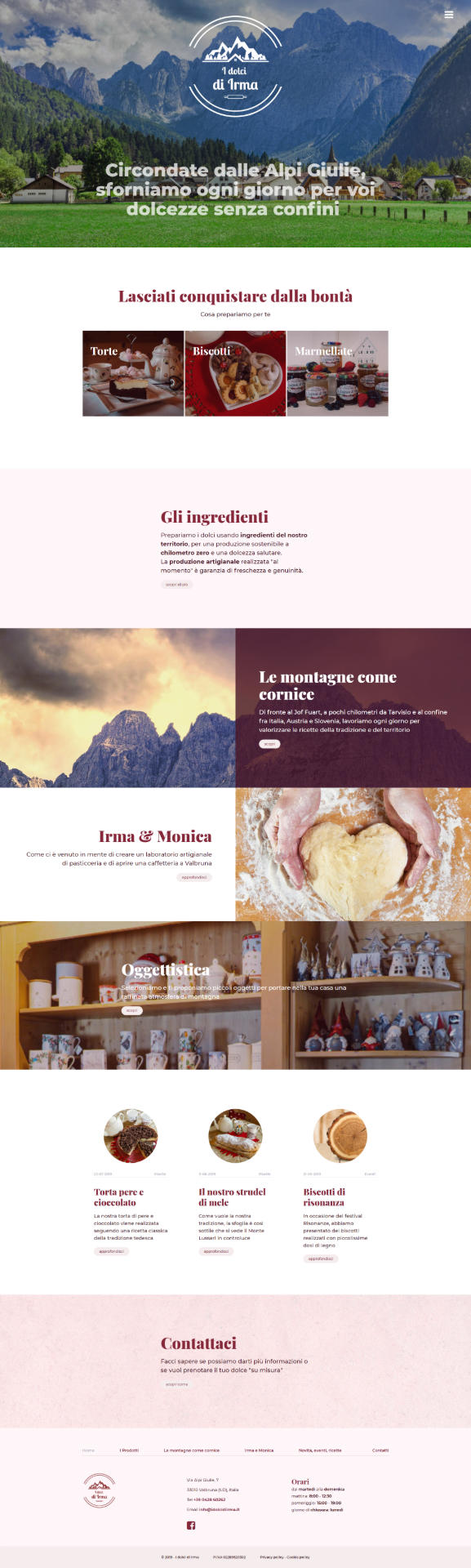 I dolci di Irma è un laboratorio artigianale di pasticceria, situato nel cuore di Valbruna, a pochi chilometri da Tarvisio e al confine fra Italia, Austria e Slovenia.