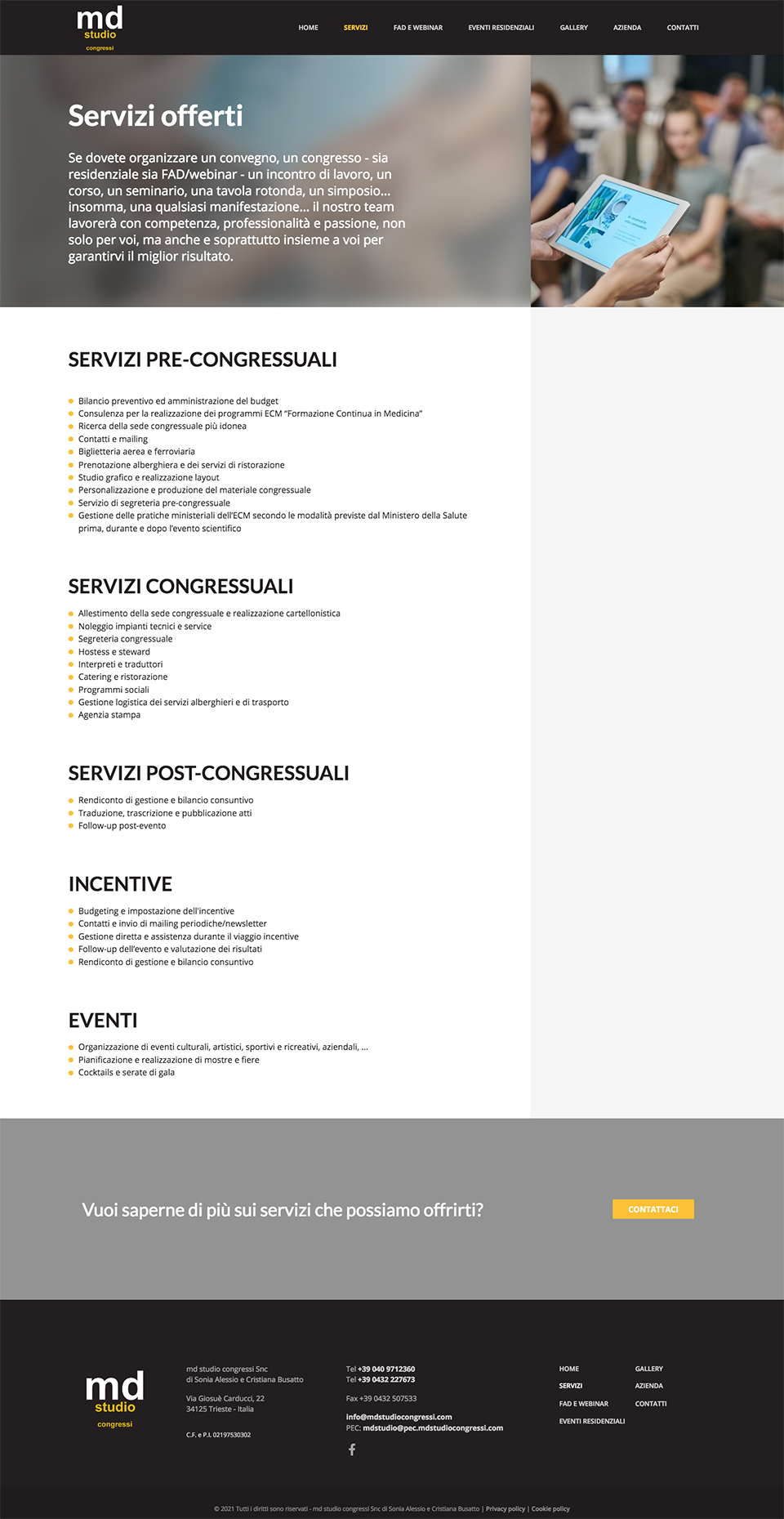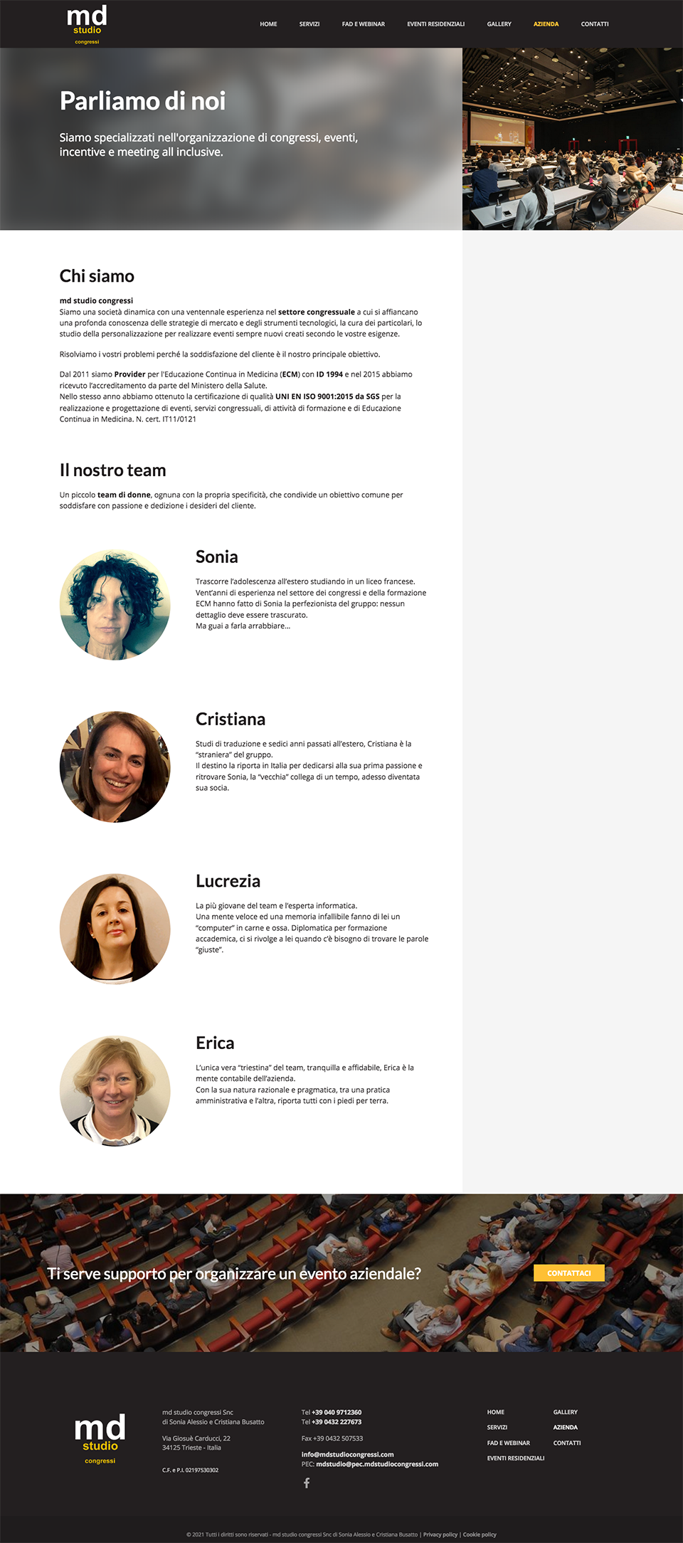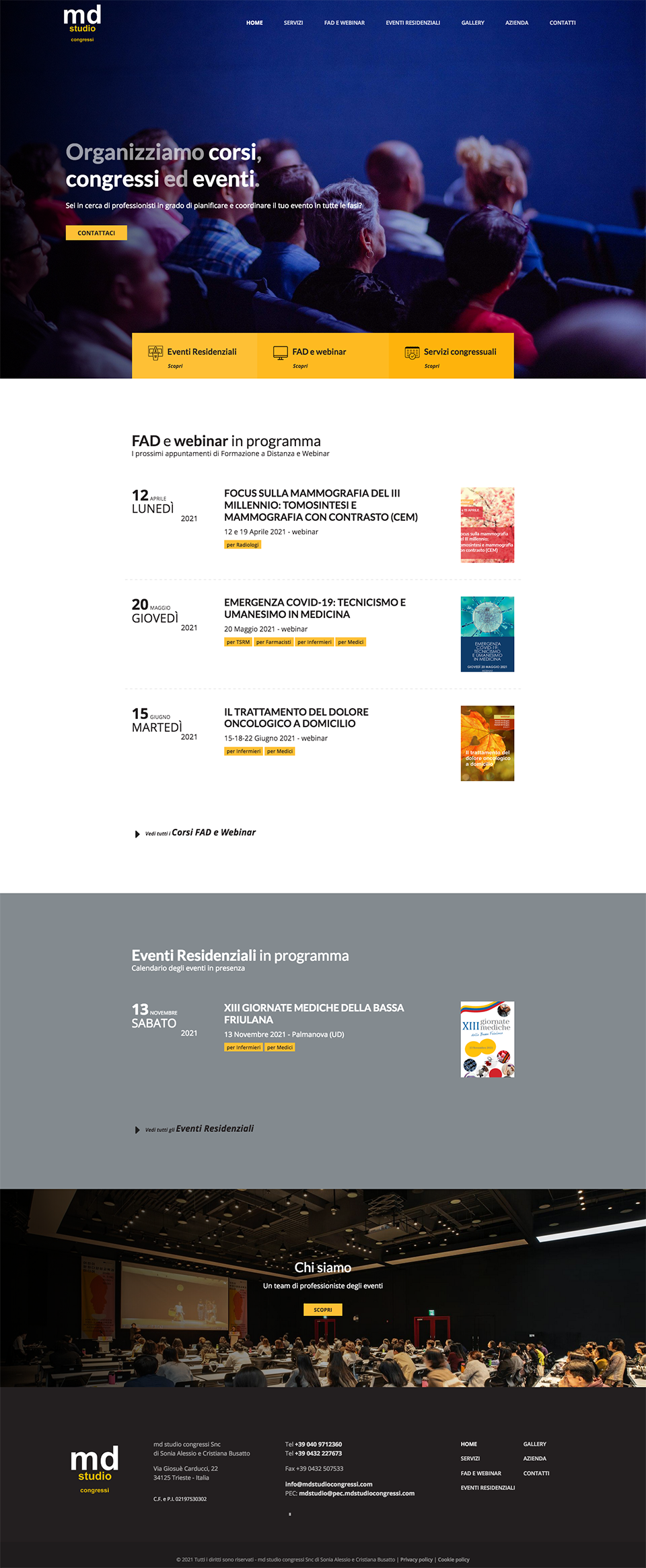 MD è una società di Trieste specializzata nell'organizzazione di congressi, eventi, incentive e meeting, in particolare nel settore medico.