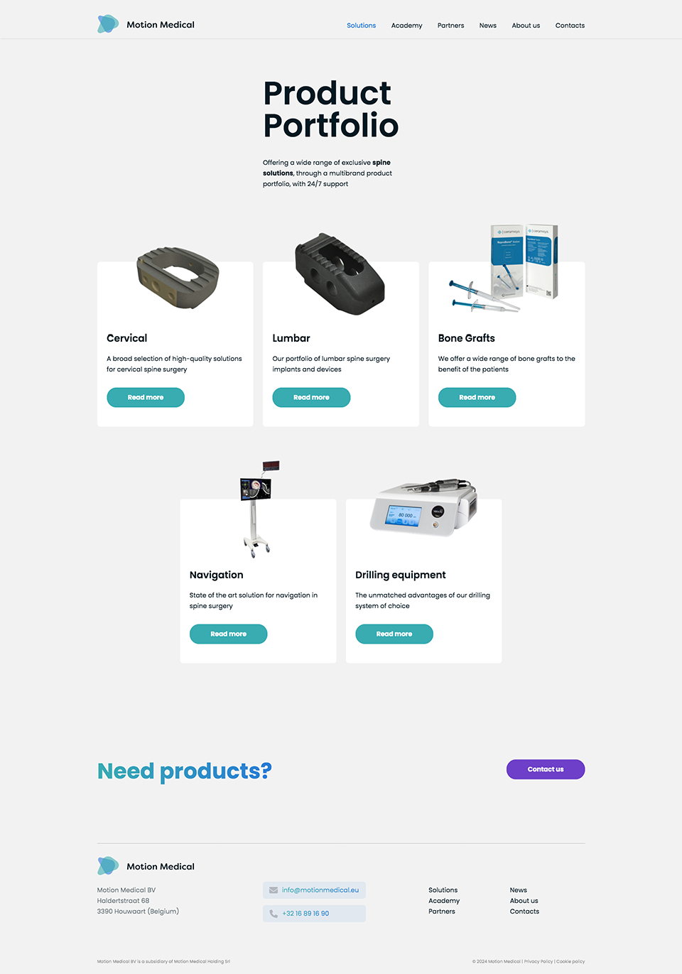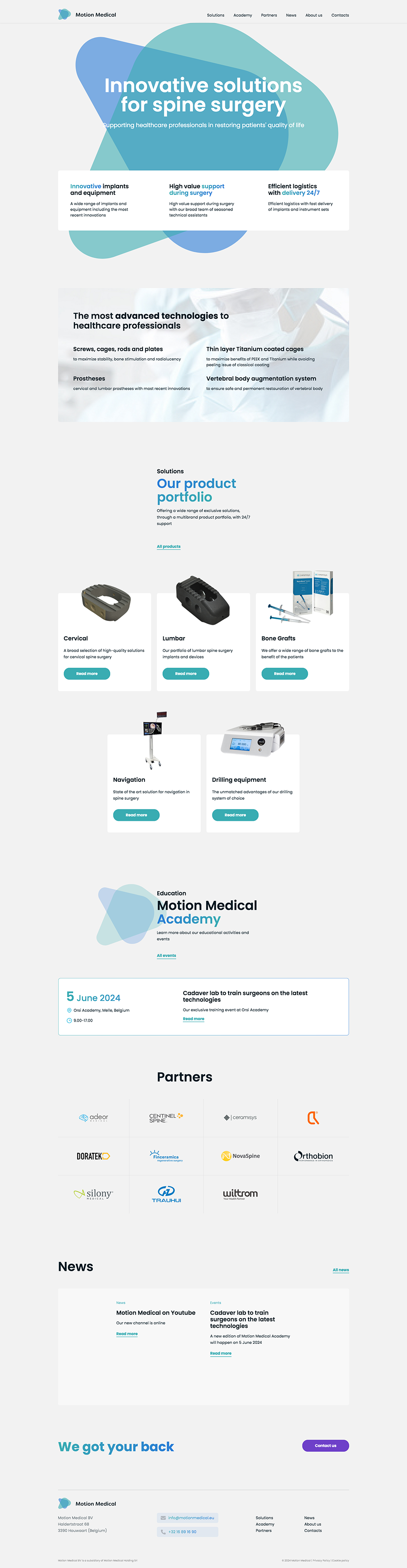 Per Motion Medical abbiamo realizzato il nuovo sito web, che valorizza sia l'intera gamma di dispositivi medici che i singoli produttori che li realizzano.