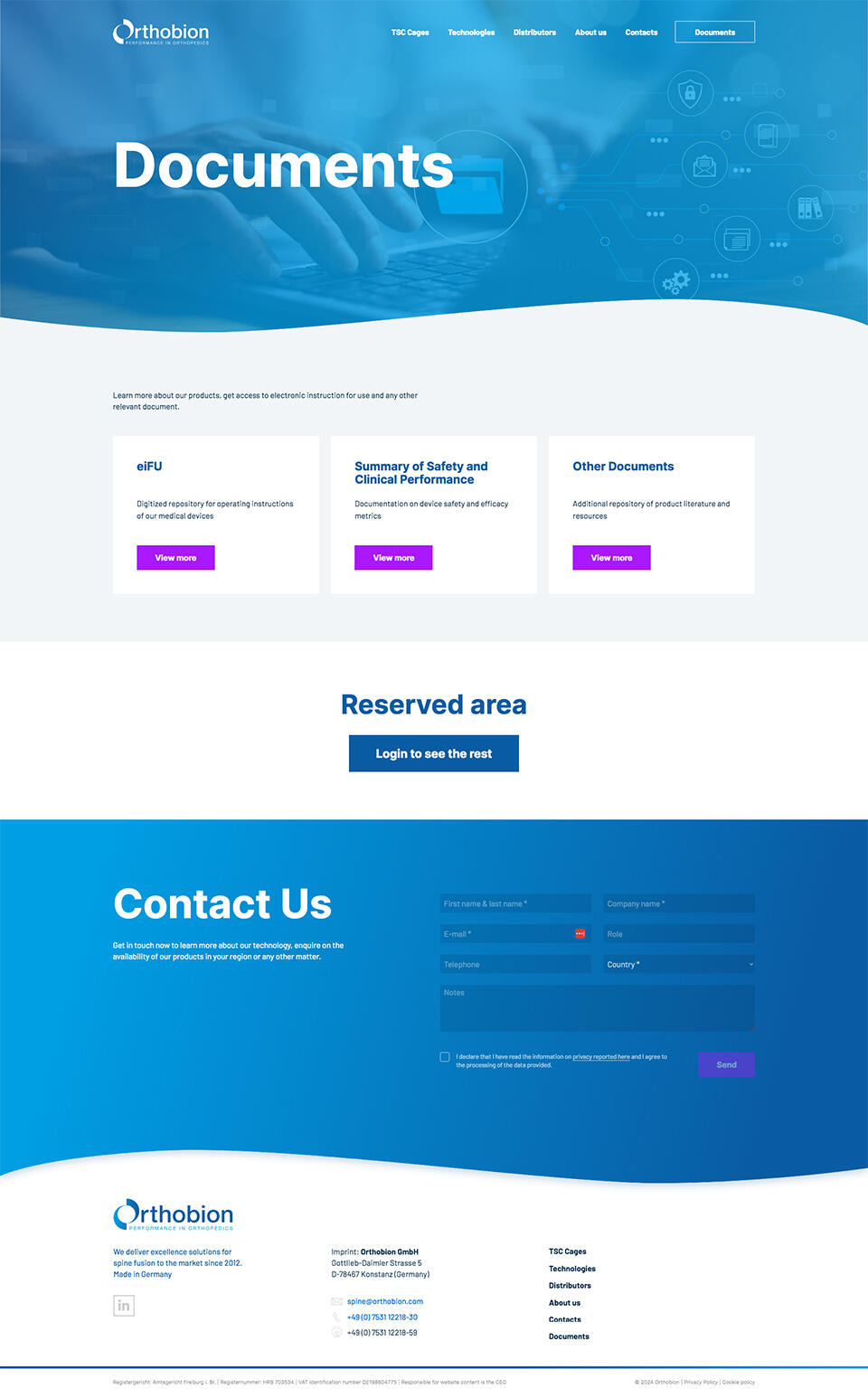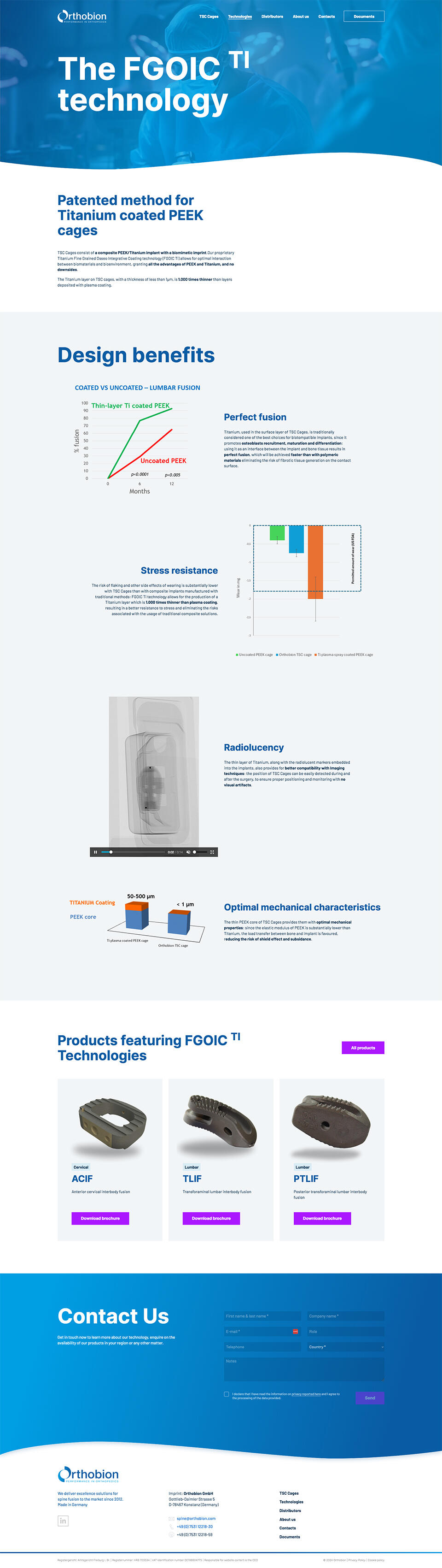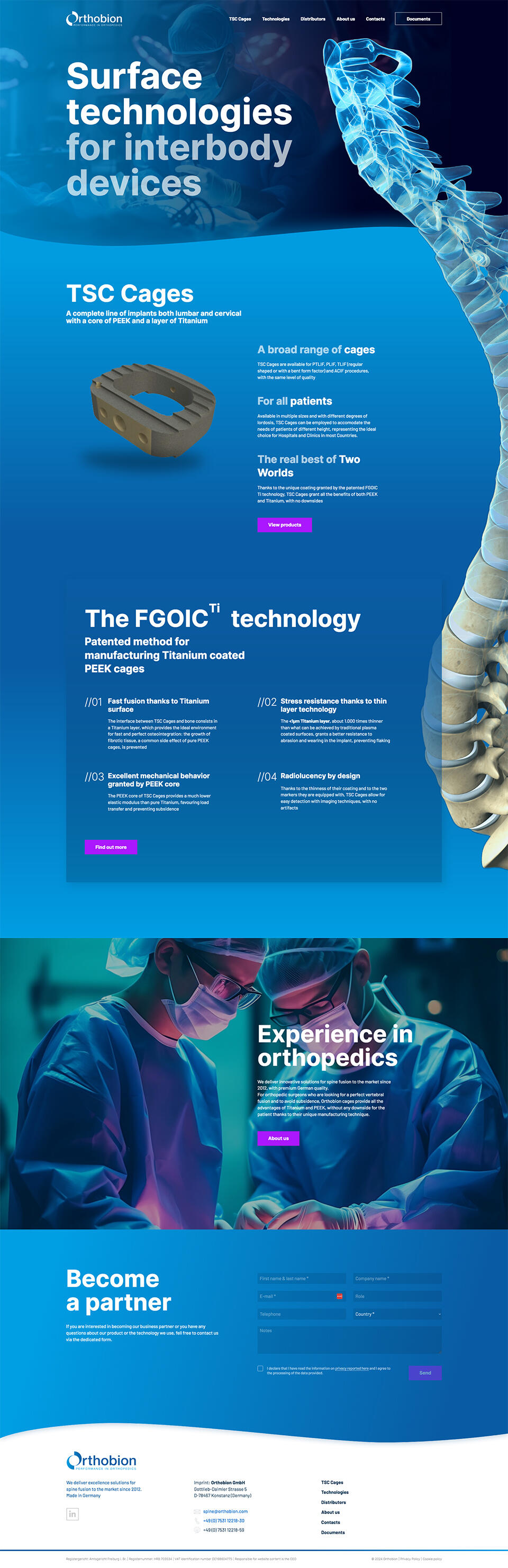 Per loro abbiamo realizzato il sito web, che oltre ai prodotti valorizza la tecnologia innovativa delle gabbie rivestite in titanio, dotato anche di un'area riservata dedicata a distributori e medici.