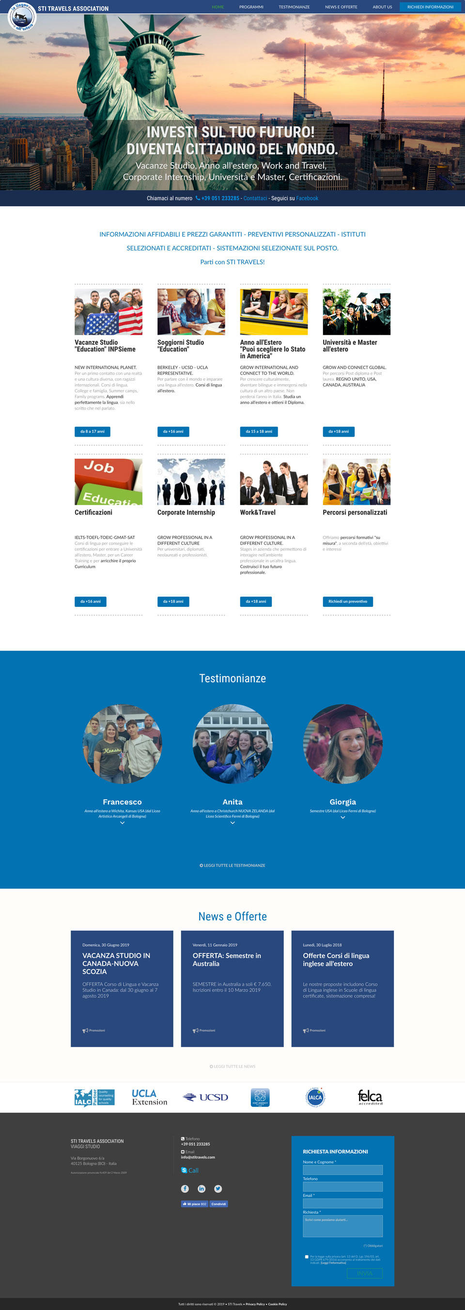 L'Agenzia Viaggi Studio STI Travels è stata fondata da un team di educatori linguistici per diffondere lo studio delle lingue all'estero, offrendo vacanze studio, studio e lavoro all'estero, corsi di lingue e stage professionali retribuiti all'estero.