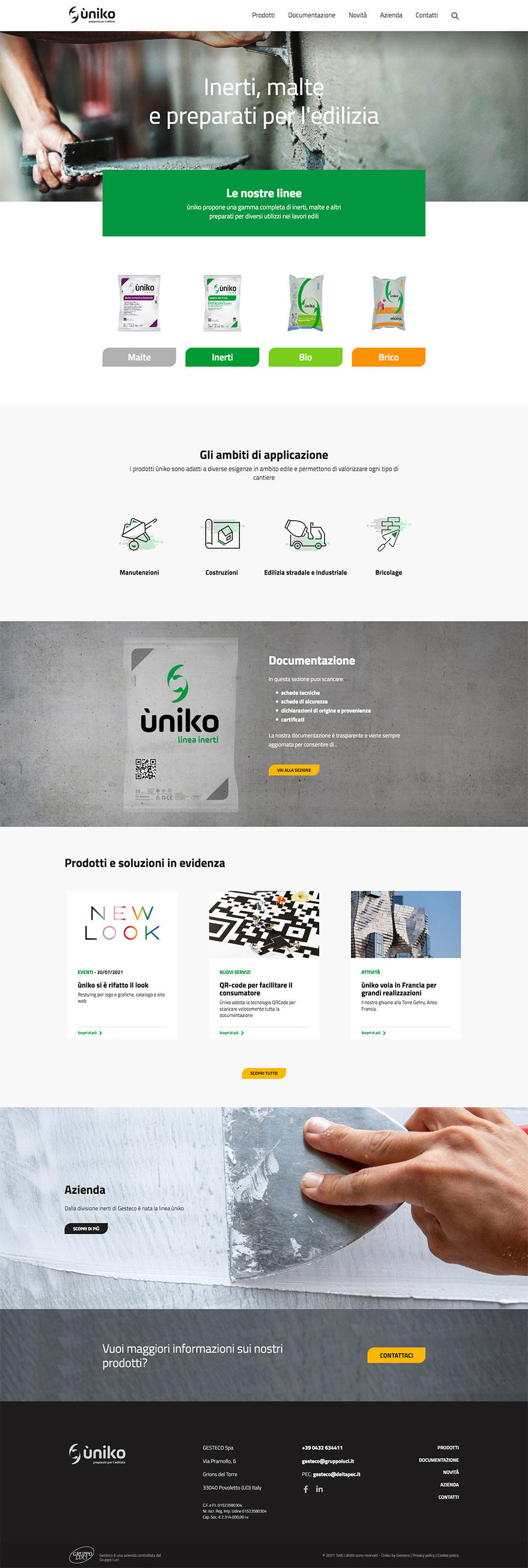 Dall'esperienza di Gesteco è nata Ùniko, una gamma completa di inerti, malte e altri preparati per diversi utilizzi nei lavori edili.