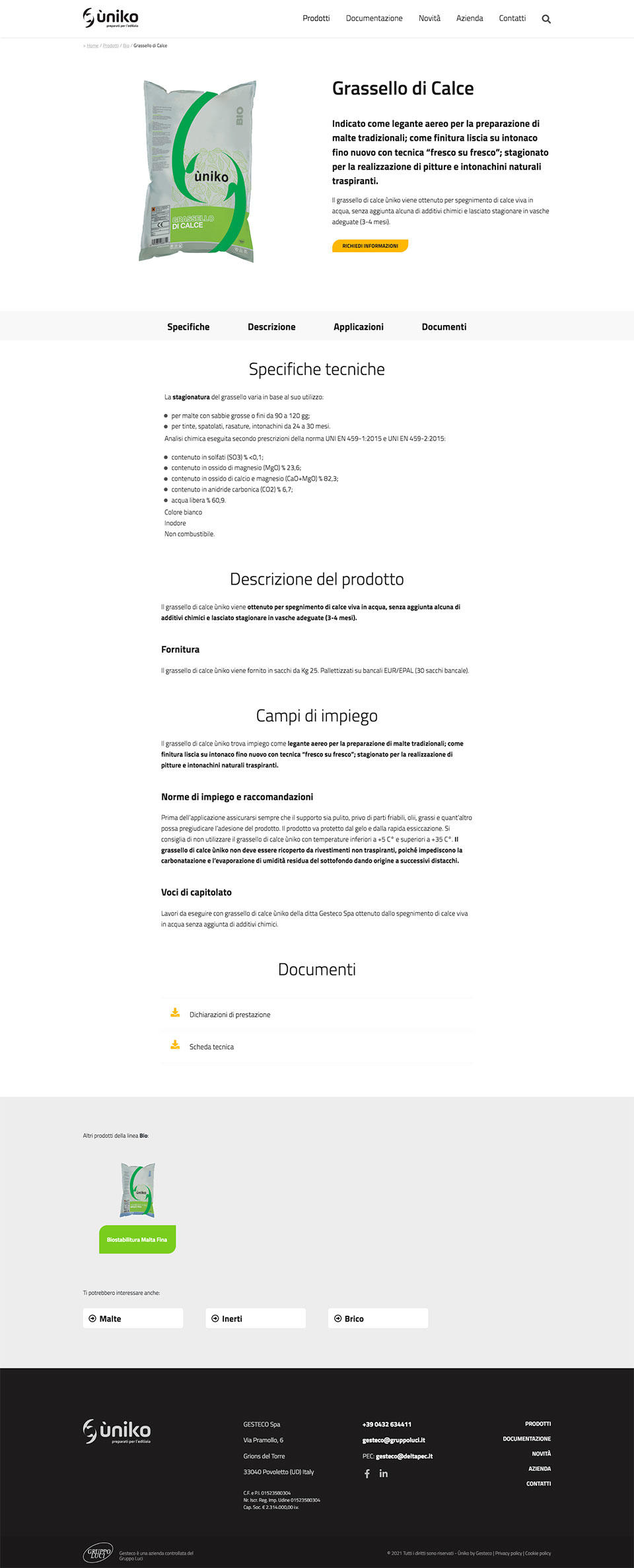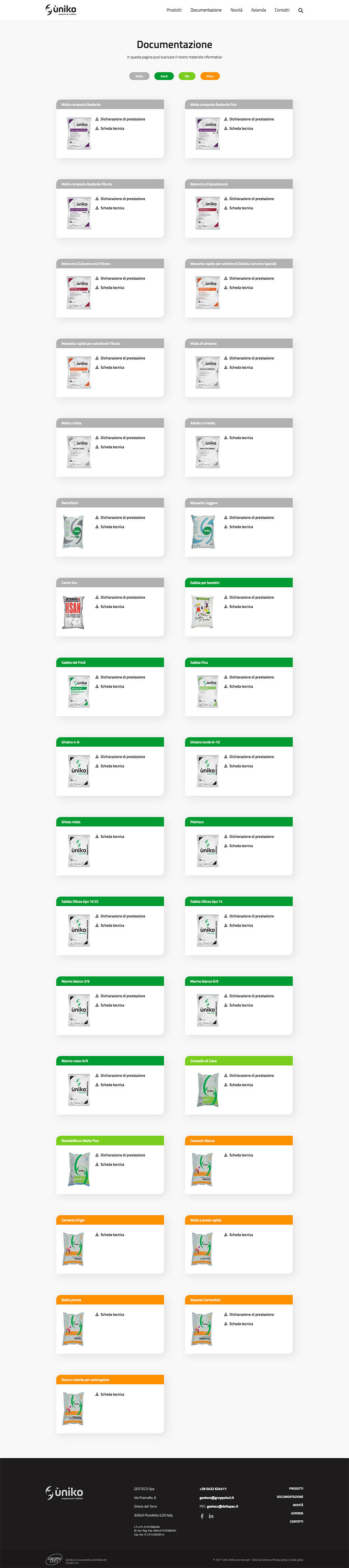 Nel sito che abbiamo realizzato, oltre alle pagine di dettaglio di ciascun prodotto, è possibile accedere ad una sezione dedicata alla documentazione tecnica e di sicurezza, suddivisa in base alle linee e ai prodotti.
